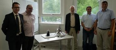 Après le discours d'accueil de Laurent Maniguet, Directeur de la plateforme CMTC et l'intervention de Frédéric Dufour, Vice-président du Conseil Scientifique en charge de la recherche à Grenoble INP, Monsieur François Lacoste est intervenu pour présenter son parcours et les raisons qui ont motivé son soutien pour l'achat de cet équipement. Les exposés se sont poursuivis avec Stéphane Coindeau et Thierry Encinas, ingénieurs sur la plateforme, sur la genèse du projet et la présentation de l'équipement. Elisabeth Djurado, enseignant-chercheur au laboratoire LEPMI, a ensuite exposé les premiers résultats obtenus grâce à cet appareil dans le cadre d’une thèse dans le domaine des piles à combustible.