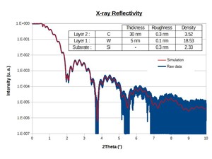 La réflectométrie X est bien adaptée à l'étude des couches minces homogènes, amorphes ou cristallisées. Elle permet de déterminer la densité de la couche, son épaisseur (de quelques nanomètres à environ 200nm) ou encore la rugosité de surface et d'interface.